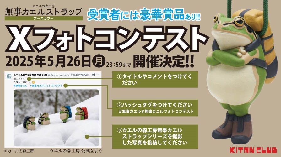 「カエルの森工房 無事カエルストラップ~アースカラー~」の発売を記念して、X(旧Twitter)にてフォトコンテストの開催が決定しました!