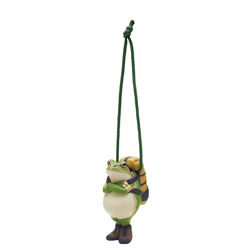 「カエル=帰る」から、無事に家に帰るという想いを込めたマスコットが、カラーリング新たに登場です!大好評の第1弾に続き、ラインナップは日本の美しい大自然をイメージしたアースカラーでまとめた全4種。作家自らが足を運んだ場所がモチーフになっています。大きなリュックを背負って、登山靴を履いたカエルたちは、元となる作品の雰囲気そのままに細部まで再現しました。